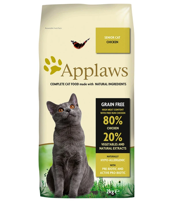 Wie bei uns Zweibeinern ändern sich auch bei unseren Haustieren mit zunehmendem Alter die Ansprüche an die Ernährung. Selbst wenn ihr Schätzchen noch einen toll fitten Eindruck macht, sollten Sie langsam an eine Ernährungsumstellung denken, wenn Sie seinen 10. Geburtstag gefeiert hat. Mit Applaws Cat Trockenfutter Senior können wir Ihnen ein Alleinfuttermittel vorstellen, dessen Rezeptur speziell auf die Anforderungen älterer Katzen zugeschnitten ist und in seiner Zusammensetzung die altersbedingten Veränderungen des Stoffwechsels berücksichtigt. Weil Ihr älteres Samtpfötchen aber immer noch ein echtes Schleckermäulchen ist, muss das Futter auch seinen Gourmet-Ansprüchen genügen. Alles Bedingungen, die Applaws Cat Trockenfutter Senior voll und ganz erfüllt. Servieren Sie Ihrer Samtpfote bald diese hochwertige Seniorenkost und genießen Sie noch viele schöne Jahre zusammen – bei bester Gesundheit!