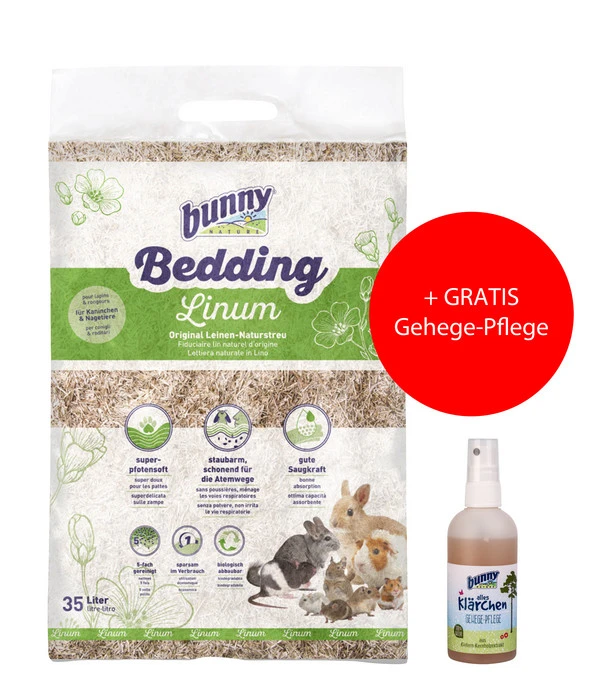 Bunny® NATURE Einstreu Bedding Linum, 35 L + GRATIS Gehege-Pflege Alles Klärchen, 100 Ml