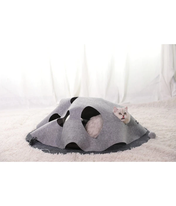 Sie lieben Ihre Tiere und sehen gerne dabei zu, wie die süßen Vierbeiner tollen und ihren Spaß dabei haben? Machen Sie Ihren Samtpfoten mit dem Katzenspielzeug Kratzteppich CatMoon von CHIARA® eine Freude! Diese interaktive Spielmatte im kreativen Mondkrater-Look bietet diverse Nutzungsmöglichkeiten, da sie flexibel formbar ist. Sowohl zum Entspannen als auch zum ausgelassenen Spielen ist dieser Rückzugsort eine Option. Das CHIARA® Katzenspielzeug CatMoon besteht unter anderem aus einem robusten Filzmaterial und lässt sich unkompliziert reinigen. Eine gummierte Teppichunterseite verhindert zudem das Verrutschen.