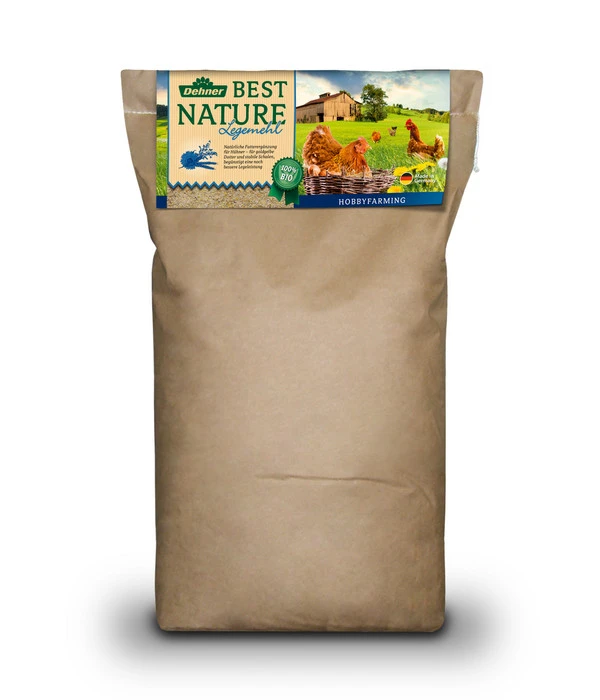 Das Dehner Best Nature Bio Legemehl besteht aus einem hochwertigen Getreidemehl-Mix aus Bio-Weizen, Bio-Körnermais, Bio-Sojabohnen und Bio-Hafer, die Ihre Legehennen mit vielen notwendigen Nährstoffen, Vitaminen und Mineralien versorgen, während die Carotinoide im Mais für appetitlich gelbe Eidotter sorgen. Der im Ergänzungsfutter enthaltene Muschelschrot wiederum unterstützt die Verdauung und fördert die Stabilität der Eierschalen. Und die im Legemehl von Dehner Best Nature enthaltenen Sonnenblumenkerne versorgen Ihre Hühner mit vielen wichtigen Spurenelementen und essentiellen Fettsäuren.