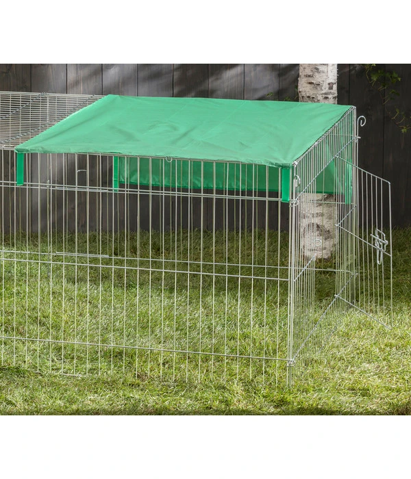 An der frischen Luft viel Bewegungsfreiheit genießen und dabei auch noch leckeres Gras mümmeln? Mit dem Dehner Freilaufgehege Björn geht dieser Traum für Ihre Kaninchen und Meerschweinchen in Erfüllung. Stellen Sie das Kaninchen Freigehege aus verzinktem Metall einfach zu Hause im Garten auf eine Rasenfläche, befestigen Sie den Freilauf mit den mitgelieferten Heringen im Untergrund und lassen Sie Ihre Kleintiere einziehen. In diesem Kaninchen Freigehege erleben Kaninchen und Meerschweinchen unbeschwerte Tage an der frischen Luft und sind dabei bestens vor Fressfeinden wie Katzen und Greifvögeln geschützt. Praktischerweise verfügt das Dehner Freilaufgehege Björn auch über eine Abdeckung aus Stoff, die einen Teil des Freigeheges vor der Sonne schützt. Genau unter dieser Abdeckung befindet sich auch eine Öffnung im Dach, über die Sie Kaninchen und Co. aus dem Freilaufgehege herausholen oder Futter und Wasser hineinstellen können.
