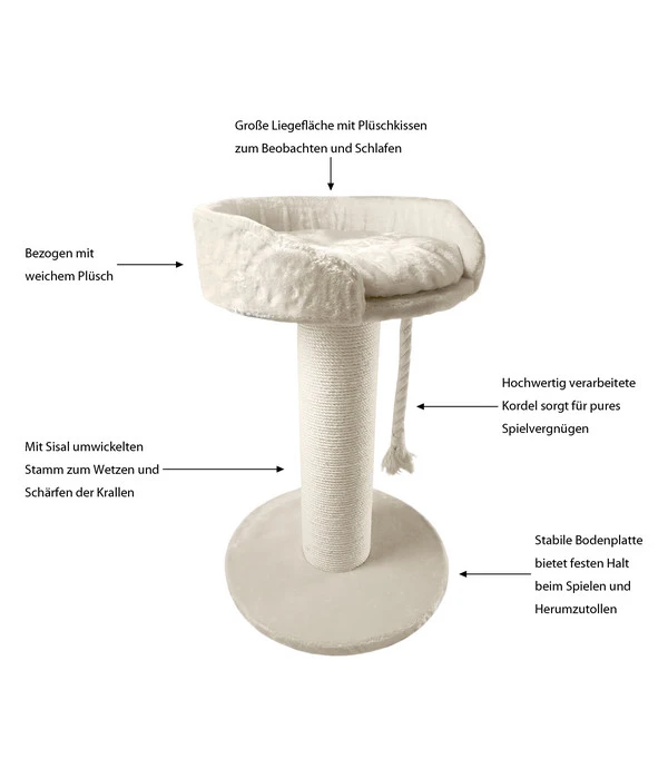 Der Dehner Lieblinge Kratzbaum Aurelio hat einen Stamm mit einem stattlichen Durchmesser von 20 cm und dieser Stamm ist komplett mit kräftigem Natursisal umwickelt. Diese Naturfaser, die meistens aus Agaven gewonnen wird, zeichnet sich durch eine besondere Festigkeit und Strapazierfähigkeit aus. Also genau das, was Ihr Samtpfote unter ihren Krallen spĂĽren möchte, um diese messerscharf zu halten. Denn bald wird sie wieder auf Mäusejagd gehen …