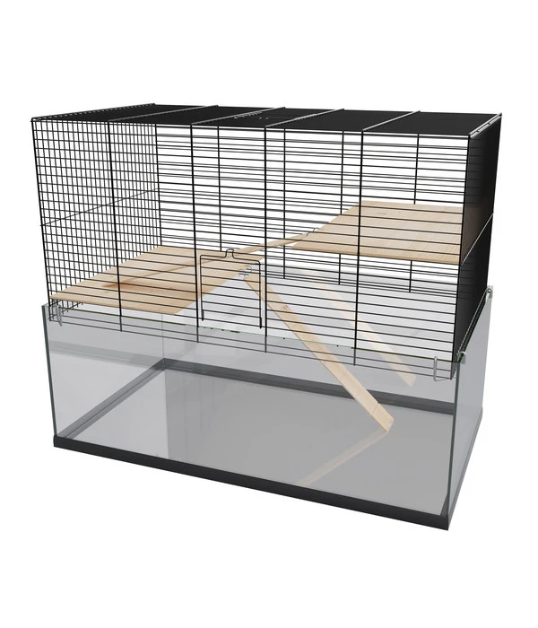 Womit haben Ihre kleinen Nager Ihr Herz erobert? Waren es die dunklen Knopfaugen oder war es die putzige Schnüffelnase? Was es auch gewesen sein mag, wollen Sie vor allem, dass es Ihren Schützlingen gut geht und sie ein Zuhause wie das Dehner Lieblinge Nagerheim Glas Palast bewohnen können. Denn darin finden sie Platz, Sicherheit und jede Menge spannende Beschäftigungsmöglichkeiten. Schon der Weg vom Boden der stylischen Glaswanne bis zur oberen Plattform bringt Bewegung ins Haustierleben. Ist die Wanne mit frischer Einstreu gefüllt, macht den Tieren das Buddeln und Spielen doppelt so viel Spaß. Bewegen sich Ihre Nagerlieblinge dabei in die Nähe Außenwand, können Sie beobachten, was unter der Oberfläche passiert. Aber auch das Erkunden der langen Holzrampen und der Plattformen werden Sie zu gerne miterleben. Der große Gitteraufsatz bietet eine optimale Luftzirkulation und sorgt so fürs Wohlfühlklima. Lassen Sie Ihre kleinen Nager also schon bald in ihr Dehner Lieblinge Nagerheim Glas Palast ziehen!