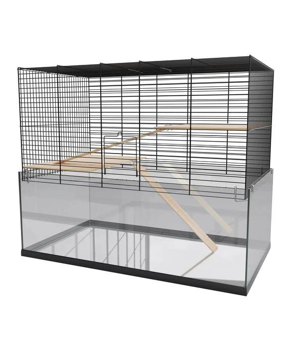 Sie werden sich auch besonders für die praktischen Aspekte am Dehner Lieblinge Nagerheim Glas Palast interessieren. Dazu gehört, dass die Glasschale ganz einfach abgewischt werden kann und damit hygienisch zu reinigen ist. Der Gitteraufsatz überzeugt mit zwei Klappen, durch die Sie gut überall in den Käfig greifen können. Für die sichere Verbindung zwischen Aufsatz und Wanne sorgen 4 robuste Klammern, was auch die Montage des Käfigs deutlich erleichtert.