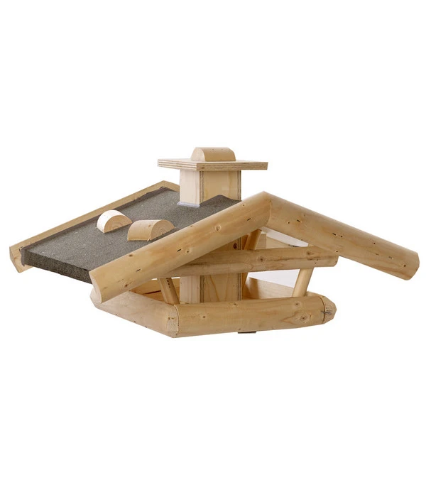 Das Dehner Natura Futterhaus Wendelstein Natur ist sorgfältig aus massivem Holz von Hand in Niederbayern gefertigt und garantiert auf diese Weise eine ausgezeichnete Stabilität und lange Lebensdauer. Auch unter freiem Himmel. Dank der vier Öffnungen – an jeder Seite eine – kann es von allen Richtungen aus gut angeflogen werden und bietet ausreichend Platz für mehrere Vögel gleichzeitig. Dank des niedrigen, weit überstehenden Daches aber haben Krähenvögel keine Chance, dort Platz zu nehmen und den kleinen Singvögelchen die leckeren Futterbröckchen wegzuschnappen. Befüllen können Sie das Futterhaus ganz bequem von oben, da sich beim Dehner Natura Futterhaus Wendelstein Natur die „Kaminabdeckung“ öffnen lässt.