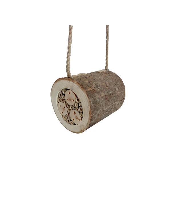 Wildbienen stehen im Schatten ihrer domestizierten Verwandten, der Honigbienen, die uns mit leckerem goldenem Honig versorgen. Dabei sind auch die wilden Bienen unverzichtbare Nützlinge, die für die Bestäubung unserer Nutz- und Futterpflanzen sorgen und ganze Ökosysteme am Laufen halten. Leider sind die Insekten bedroht, da ihre natürlichen Lebensräume schwinden und Brutplätze immer seltener werden. Dagegen können Sie als Naturfreund etwas tun! Stellen Sie den fleißigen Bienchen in Ihrem Garten einen künstlichen Nistplatz wie das Dehner Natura Insektenhotel Trentino zur Verfügung. Das 15 x 17,5 cm bzw. 10 x 17,5 cm (Ø x L) große, dekorative Nützlingsheim besteht aus naturbelassenem und wetterfestem Pappelholz. Es verfügt über viele Zimmer aus Pflanzenstängeln, in denen die Brut von Wildbienen und Wespen sicher vor Fressfeinden groß werden kann. Zusätzlich dazu bieten in Hartholz gebohrte Röhren den Tieren sichere Rückzugsorte. Dank des praktischen Seils zum Aufhängen können Sie das Dehner Natura Insektenhotel Trentino überall dort am Balkon oder im Garten befestigen, wo Sie möchten. Achten Sie aber darauf, dass der Standort gut geschützt vor Wind und Regen ist und reichlich Sonne abbekommt. Die brauchen die wechselwarmen Insekten um aktiv zu sein und ihre Larven, um im Frühling schlüpfen zu können. Mit dem Dehner Natura Insektenhotel Trentino unterstützen Sie so die nützlichen Wildbienen und Wespen in Ihrer Umgebung und können das spannende Tun der geflügelten Nützlinge hautnah mitverfolgen.