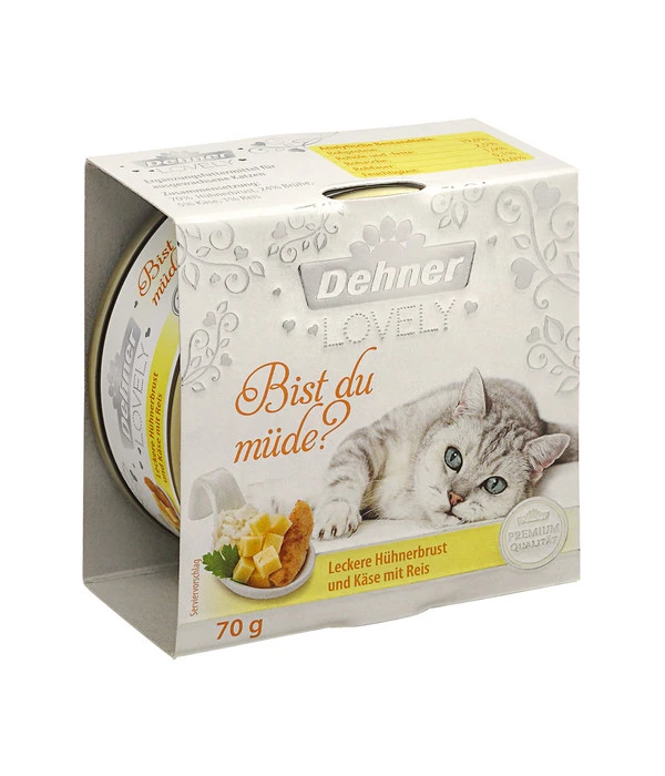 Gönnen Sie Ihrer Samtpfote ein besonderes Genuss-Erlebnis: Dehner Premium Lovely Nassfutter Bist du müde?