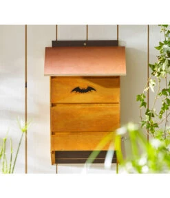 Fledermäuse haben gerade in Stadtgebieten Schwierigkeiten, einen geeigneten Schlafplatz zu finden. Mit dem Fledermauskasten von Elmato bieten Sie den kleinen Nachtschwärmern eine sichere Schlafstätte. Der Kasten aus heimischer Fichte verfügt über ein wetterbeständiges Dach und ist somit bestens für den Außenbereich geeignet. Über die Einflugöffnung an der Unterseite gelangen die Tiere hinein und finden an der gerillten Rückwand viel Halt zum Schlafen. Von Zeit zu Zeit sollte der Elmato Fledermauskasten gereinigt werden – hierzu lässt sich die Front leicht aufklappen.