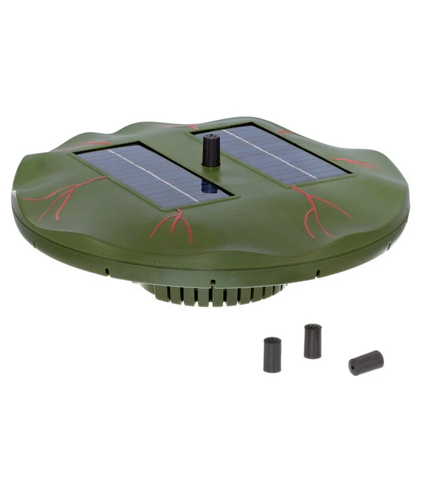 Es ist wunderschön einen Teich zu besitzen. Wenn Seerosen und Schilf gedeihen, ist der Anblick des eigenen Biotops mit nichts zu vergleichen. Und doch gibt es noch eine Steigerung, vorausgesetzt, Sie besitzen eine Esotec Solarpumpe Seerose für den Gartenteich. Mit diesem stilisierten Seerosenblatt erwerben Sie eine hochwertige Pumpe, die durch Strom aus Sonnenenergie betrieben wird. Dafür sorgen zwei moderne Solarmodule, die auf der Pumpe angebracht sind. Sie kann frei auf Ihrem Teich schwimmen. Die Pumpe in ihrem Inneren ist verschleißarm, besonders langlebig und besitzt einen elektronischen Antrieb. Ihnen sind also viele Jahre Wasserfontänen im eigenen Teich sicher. Die Esotec Solarpumpe Seerose für den Gartenteich bringt 4 verschiedene Aufsätze mit, die dann unterschiedliche Formen von Fontänen hervorbringen.