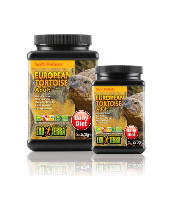 Dieses Exo Terra® Schildkrötenfutter Soft Pellets Adult ist für Ihre Schildkröten optimal geeignet. Mit extra Vitaminen und Mineralstoffen, fördert dieses sorgfältig zubereitete und wohlschmeckende Reptilienfutter ein gutes Wachstum und langfristige Gesundheit Ihrer Schildkröten. Vor allem europäische Landschildkröten, Hermanns Landschildkröten sowie Russische Vierzehenschildkröten, werden sich an diesem Exo Terra® Schildkrötenfutter Soft Pellets Adult besonders erfreuen.