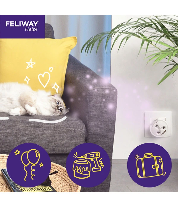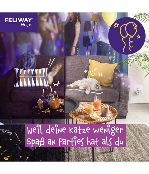 Steht bei Ihnen eine Feier an? Planen Sie einen Umzug? Möchten Sie einen Kurzurlaub machen oder kommt der Tierarzt? Dann nutzen Sie ab jetzt das FELIWAY® Help Verdampfer Start-Set! Mit diesem praktischen Helfer wird Ihre Katze so schnell nichts mehr aus der Ruhe bringen. Ihre Katze wird ganz normal fressen, das Katzenklo wie gewohnt besuchen und nicht mehr aufgedreht sein. Alles geht seinen gewohnten Gang. Legen Sie jetzt das FELIWAY® Help Verdampfer Start-Set in Ihren Warenkorb und sorgen Sie so für eine stressfreie und ruhige Zeit!