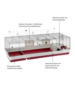 Sie spielen mit dem Gedanken, Kaninchen oder Meerschweinchen ein Zuhause zu geben? Vielleicht möchten Sie auch Ihren Jüngsten den sehnlichen Wunsch nach einem putzigen Nager als Haustier erfüllen? Das ferplast Nagerheim Krolik 160 cm bietet die perfekte Erstausstattung für die tierfreundliche Nagerhaltung. Der Käfig ist leicht und auch für den Transport Ihrer Tiere geeignet. Bieten Sie Ihren kleinen Fellfreunden maximalen Komfort und integrieren Sie Ihr Nagerheim Krolik in einen großzügigen Freilaufbereich. So haben Ihre Tiere einen gemütlichen Rückzugsort zum Ruhen und Übernachten.
