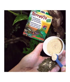 Aufgrund der Verschiedenartigkeit der unterschiedlichen Reptilienarten kann keine exakte Dosierungsempfehlung gegeben werden. Als Anhaltspunkt: Füttern Sie wöchentlich circa einen Dosierlöffel JBL TerraVit pro 100 g Futter. Bei großen Tieren, die nur in größeren Zeitabständen fressen empfiehlt sich ein 0,5 bis 1 Dosierlöffel pro Fütterung.