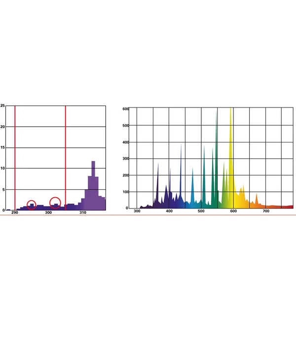 Die Lucky Reptile Bright Sun UV Jungle wurde so entwickelt damit sie den Bedingungen im natürlichen Habitat und der Lebensweise der Tiere Tribut zu zollen. Tropische Reptilien leben im Dschungel somit wird einiges an UV-Licht durch die Blätter und Zweige im Regenwald gefiltert und die Tiere bekommen nicht die voll Intensität der Sonne zu spüren. Mit der Lucky Reptile Bright Sun UV Jungle bekommen Sie denselben Effekt, da die Lampe weniger UV-Licht abgibt als herkömmliche Metalldampflampen. Sie sollten beachten, dass kletternde und baumbewohnende Tiere oft sehr nah an die Lampen herankommen. Da UV-Strahlung generell ein Gefahrenpotential haben und die UV-Intensität bei 10 cm Abstand 5-mal so hoch wie bei 30 cm Abstand ist, wurde der UV-Anteil bei der Lucky Reptile Bright Sun UV Jungle bewusst reduziert. Natürlich wurde das Spektrum der Lucky Reptile Bright Sun UV Jungle an die natürlichen Bedingungen in Waldregionen angepasst. Die Farbtemperatur beträgt 4000K und ist somit deutlich wärmer als das Tageslicht der Bright Sun UV Desert. Verschiedene Tests bestätigen, dass tropische Echsen, wie beispielsweise Wasseragamen, unabhängig vom UV-Anteil das wärmere Licht der Lucky Reptile Bright Sun UV Jungle dem Tageslicht der Lucky Reptile Bright Sun UV Desert vorziehen. Ein weiterer Vorteil der Metalldampflampe Lucky Reptile Bright Sun UV Jungle ist dass das wärmere Licht die grünen Farben der Pflanzen besser hervor bringt, somit ist Ihr Terrarium ein echter Blickfang. Die Terrarienlampe ist so konzipiert, dass die Wärme im direkten Strahlbereich des Lichts gebündelt wird. Somit wird die Wärme direkt nach unten gerichtet und geht bei der Lucky Reptile Bright Sun UV Jungle nicht nach oben oder zu den Seiten verloren, so wie es bei den meisten UV-Strahlern der Fall ist.