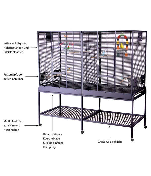 Vogelvoliere, mit Kotgitter und -schublade, Trenngitter und Zubehör, auf Rollen