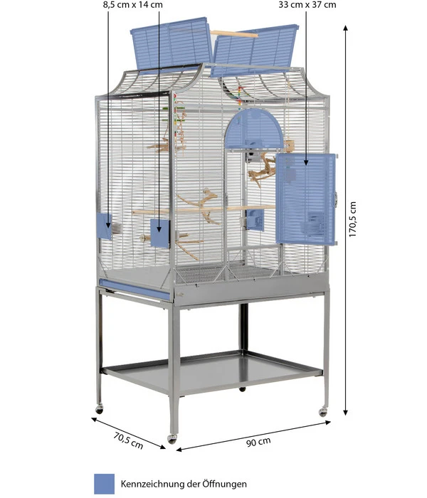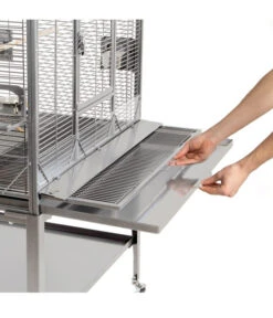Als erfahrener Vogelhalter legen Sie natürlich zudem großen Wert auf einen praktischen Aufbau Ihres neuen Käfigs. Die Montana Vogelvoliere Madeira III lässt sich dank ihrer stabilen Rollenfüße kinderleicht bewegen. Vielleicht wollen Sie tagsüber auf den Sonneneinfall in Ihrer Wohnung reagieren oder die Vögel bei schönem Wetter auf Ihre überdachte Terrasse schieben? Und der extra Stauraum im unteren Bereich bietet auf praktische Weise Stellplatz für Futter und verschiedene wichtige Utensilien, die Sie gerne immer griffbereit haben. Dass sich das Kotgitter entfernen lässt erleichtert Ihnen zudem die Reinigung – einfach perfekt!