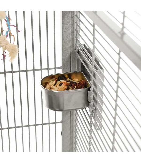 Stabile Rollen-Beine, 4 Edelstahlnäpfe, 2 Sitzstangen