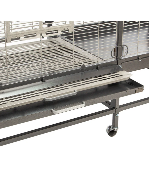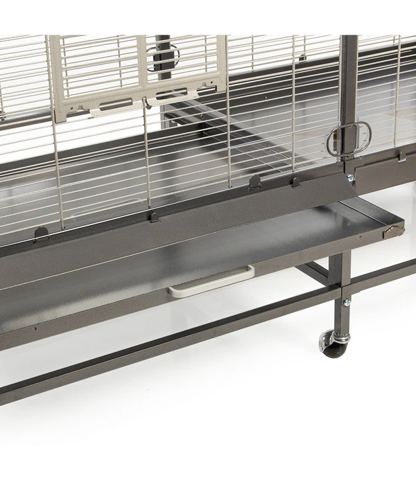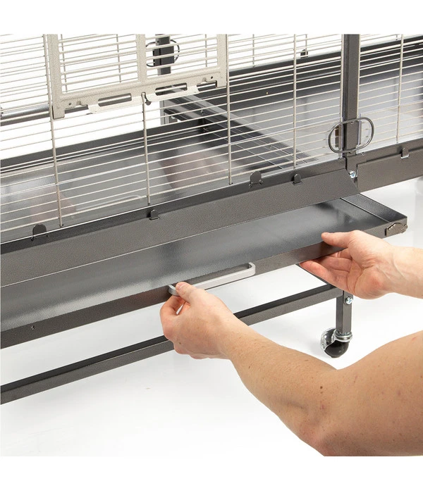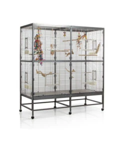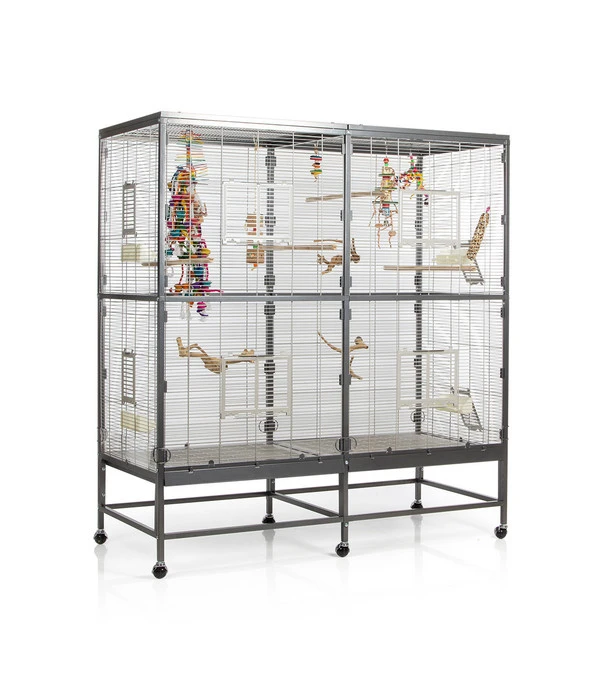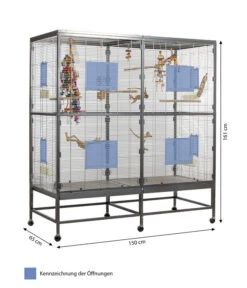 Die Montana Voliere Paradiso 150 bietet Wellen-, Nymphen- und Großsittichen sowie kleinen Papageien sehr viel Platz. So sorgt diese durchdachte Voliere von Qualitätshersteller Montana für eine überaus artgerechte Unterbringung Ihrer Vögel. Der zur Verfügung stehende Raum übertrifft sogar Expertenempfehlungen, wenn es um den gesunden Freiraum für Ihre farbenfrohen Haustiere geht! Apropos gesund: Die Montana Voliere Paradiso 150 besteht aus schwermetallfreiem Stahl, überzogen mit einer Avilon Pulverbeschichtung, welche speziell für die Vogel- & Nagerhaltung ausgelegt und im Gegensatz zu Zink gesundheitlich völlig unbedenklich ist. Obendrein überzeugt diese Vogelvoliere durch ihre stabile Metallkonstruktion. Und auch, wenn Sie dieses ausgesprochen robuste Vogelheim verschieben möchten, ist dies dank der praktischen, 360° drehbaren Rollenfüße kein Problem.