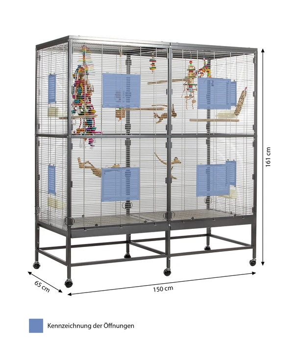 Vogelvoliere, mit Avilon-Pulver-Beschichtung, fĂĽr Wellen-, Nypmphen- und GroĂźsittiche sowie kleine Papageien, MaĂźe 150/161/65 cm