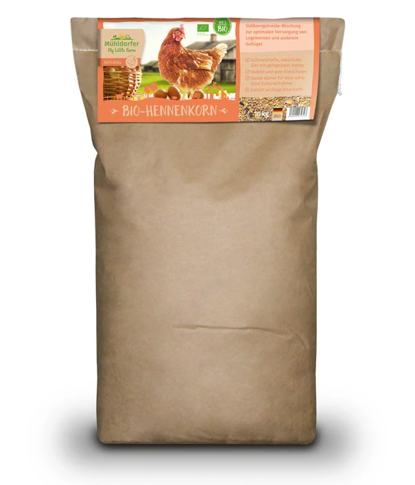 Auch ein blindes Huhn findet mal ein Korn! Wenn es Glück hat, ist es das My Little Farm by Mühldorfer Bio Hennenkorn. Dieses hochwertige Futter für „glückliche Hühner“ setzt sich aus einer nährreichen Vollkorn-Getreidemischung zusammen, die Ihre Lieblingstiere optimal versorgt. Der Muschelschrot in diesem Hühnerfutter reguliert zudem die Verdauung Ihrer Hühnerschar und sorgt für feste Eierschalen.