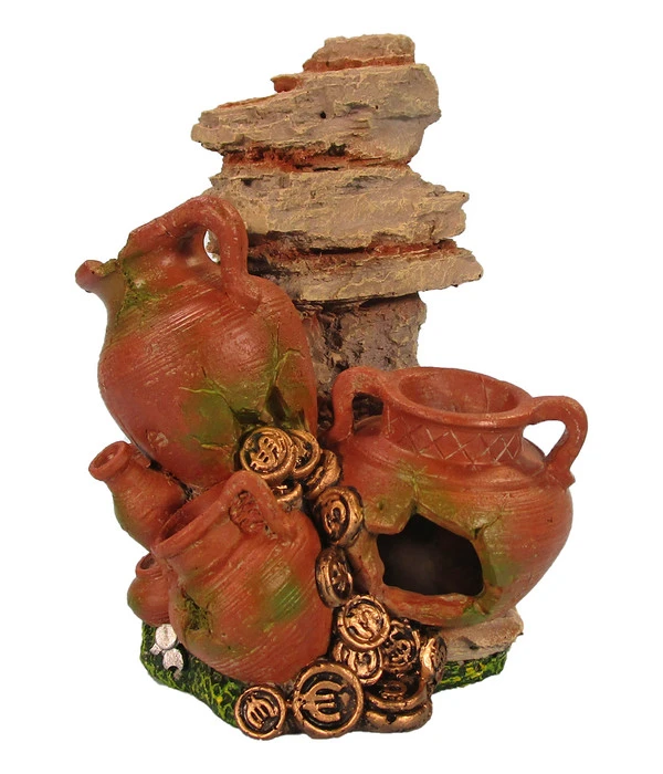 Nicht nur Ihre Fische machen Sie beim Blick in Ihr Aquarium glücklich, sondern auch Ihre fantasievolle Unterwasserlandschaft? Dann werden Sie die Aquariumdeko Fässer mit Felsen von ORBIT® lieben. Sie besteht aus einer natürlichen Felsnachbildung, vor der mehrere urige Fässer liegen. Einige von ihnen sind aufgebrochen und geben wertvolle Schätze wie Perlen, Münzen und Goldbarren preis. Sehr gut passt dieses Arrangement zu einem Piratenschiff in Ihrem Aquarium, aber auch zu vielen anderen Dekoideen, die Sie mit dieser liebevollen Gestaltung verwirklichen können. Zusammen mit Wasserpflanzen erschaffen Sie eine eindrucksvolle Kulisse, die Blicke im Becken umherwandern lässt.