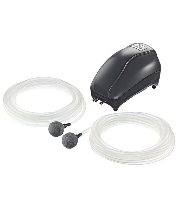 Besonders im Sommer, wenn man viel Zeit im Grünen verbringen möchte, sorgt ein Gartenteich für eine gemütliche und entspannte Atmosphäre. Er kann den Garten erheblich aufwerten und ihm das gewisse Etwas verschaffen. Allerdings nur so lange wie das Ökosystem funktioniert und der Teich mit ausreichend Sauerstoff versorgt ist. Schützen Sie Ihren Gartenteich deshalb mit dem Pontec Teichbelüfter Pondoair Set 200 vor einer rapiden Sauerstoffabnahme und bewahren Sie Ihre Pflanzen und Tiere so vor schweren Schädigungen. Um Ihr Gewässer gleichmäßig mit Sauerstoff versorgen zu können, ist der Teichbelüfter mit zwei fünf Meter langen Luftschläuchen mit jeweils einem Ausströmerstein ausgestattet. Seine maximale Fördermenge beträgt 200 Liter pro Stunde. Um eine langfristige Verwendung zu gewährleisten, sind zwei Ersatzmembranen im Lieferumfang des Sets enthalten.