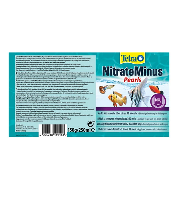 Sie möchten Ihr Aquarium neu einrichten und auf natürliche Weise eine Nitratsenkung im Wasser für bis zu 12 Monate ermöglichen? Dann ist die Aquarienwasserpflege NitrateMinus Pearls von Tetra ein idealer Helfer für Sie. Erfreulicherweise lässt sich damit beispielsweise das stetig aufkommende Algenwachstum deutlich einschränken. Der Nitratwert kann auf Grundlage der jeweiligen Beckenbedingungen dauerhaft auf unter 40 bis 50 mg/l gesenkt werden. Dies hat für Sie auch einen reduzierten Pflegeaufwand zur Folge und Sie haben mehr Zeit, sich entspannt an der Pracht Ihres hübschen Aquariums zu erfreuen. Zugleich bietet die von Tetra stammende Aquarienwasserpflege NitrateMinus Pearls Ihren Fischen, Garnelen, Schnecken und allen anderen Wasserbewohnern und Pflanzen eine langfristig erhöhte Wasserqualität.