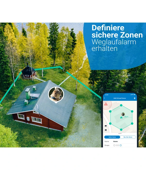 Sie können beim tractive® Katzen-GPS Tracker einen sogenannten ‘virtuellen Zaun‘ definieren, zum Bespiel Ihr Grundstück oder eine vielbefahrene Straße. Verlässt Ihre Katze diesen definierten Bereich, erhalten Sie sofort eine Nachricht auf Ihr Smartphone. Der Tracker funktioniert über jede Distanz und hat eine unbeschränkte Reichweite. Deshalb können Sie Ihre Samtpfote auch vom anderen Ende der Welt aus orten – und das aus mehr als 175 Ländern. Und das bei einer besonders langen Akkulaufzeit von bis zu 7 Tagen. Tipp: Erstellen Sie zu Hause eine Energiesparzone, um die Akkulaufzeit zu maximieren.