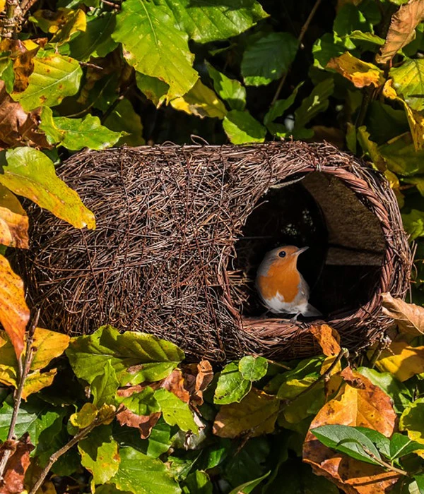 Sie möchten einen Beitrag zur Artenvielfalt in der Natur leisten und gleichzeitig mit einem hübschen Accessoire Ihren Garten attraktiv gestalten? Mit der Wildlife Nisthöhle Simon King bieten Sie Rotkehlchen einen Lebensraum, der ganz auf ihre natürlichen Gewohnheiten zugeschnitten ist! Das Design des Nestes orientiert sich an den Erkenntnissen des Naturforschers Simon King und seiner langjährigen Beobachtung von Vögeln und Wildtieren. Schaffen Sie mit der Nisthöhle ideale Bedingungen für Rotkehlchen in Ihrem Garten! Sie bevorzugen ein Nest, das offen, gut anzufliegen und zugleich vor Feinden geschützt ist. Die Nisthöhle hat einen breiten, offenen Eingang mit einer Plattform aus Rattan, während der Nistraum selbst hinter einer niedrigen Trennwand verborgen ist. Damit gewähren Sie den Rotkehlchen einen einfachen Zugang, während die Jungvögeln ausreichend Schutz vor Räubern bekommen.